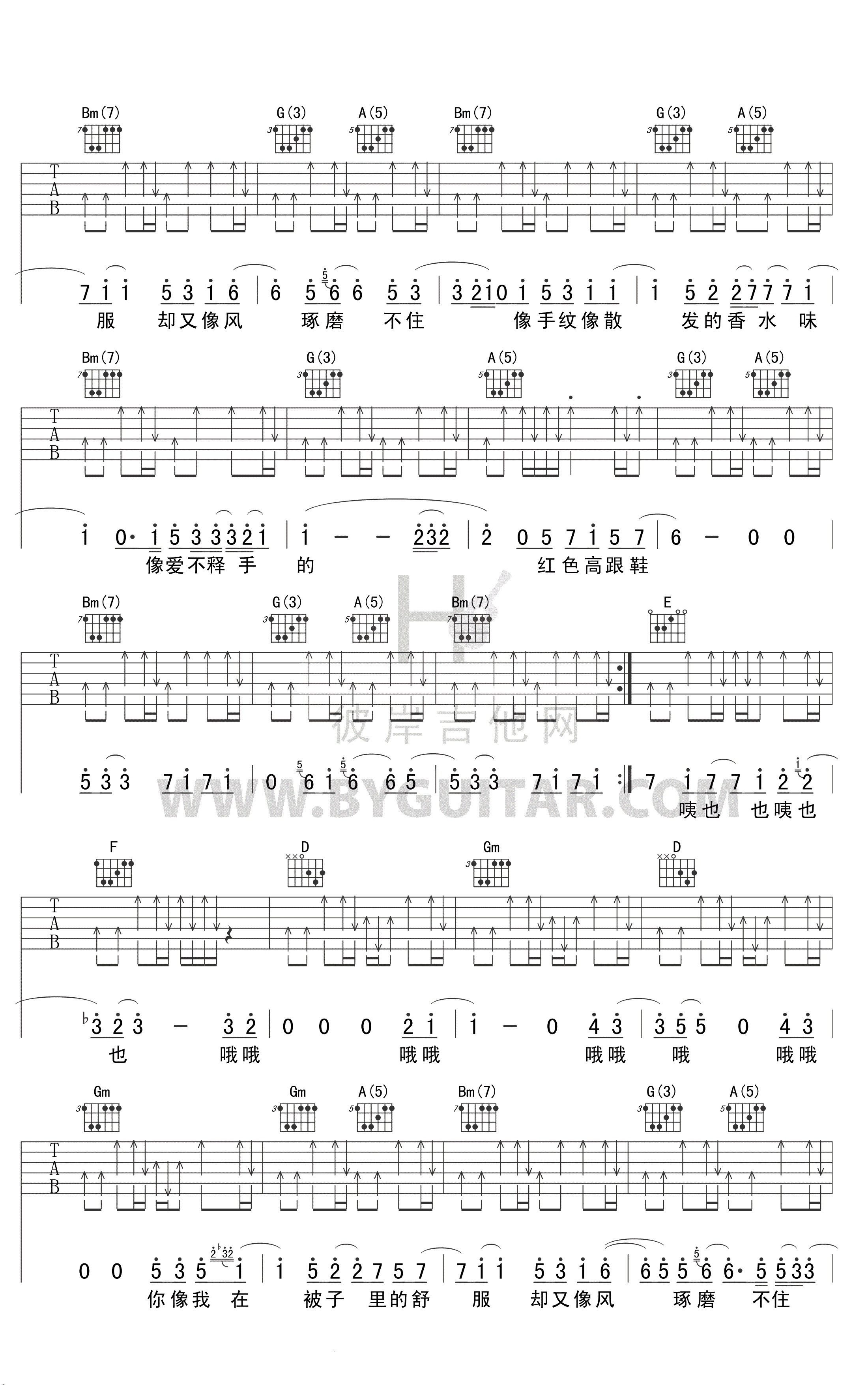 红色高跟鞋吉他谱,蔡健雅歌曲,简单指弹教学简谱,彼岸六线谱图片
