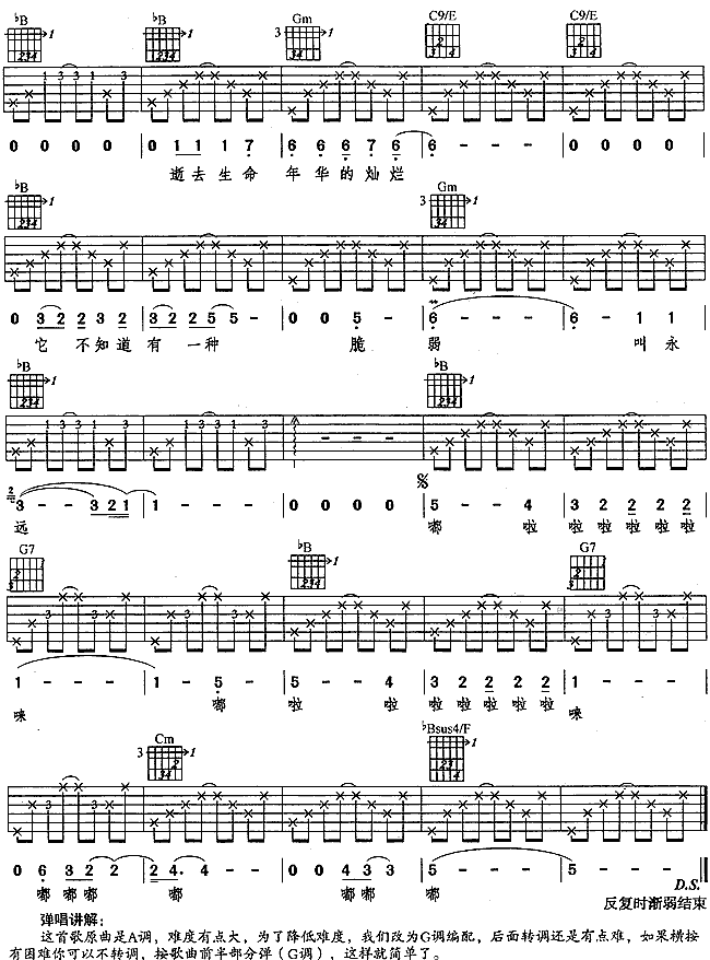歌曲选自(青春正传)专辑非常好听的弹唱曲谱,下面3张 高清曲谱由吉它谱网为大家更新分享,有喜欢吉它的朋友欢迎关注!
