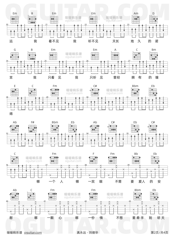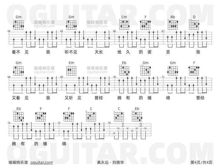 真永远吉他谱,刘德华歌曲,G调高清图,4张六线原版简谱