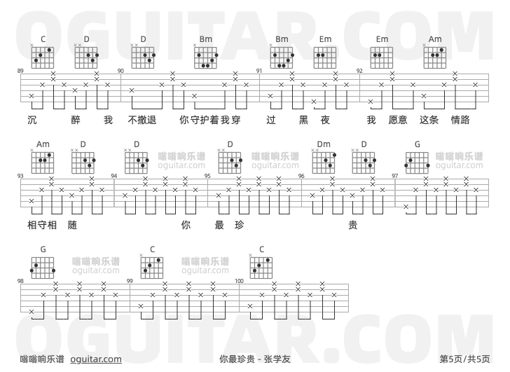 你最珍贵吉他谱,张学友歌曲,G调高清图,5张六线原版简谱