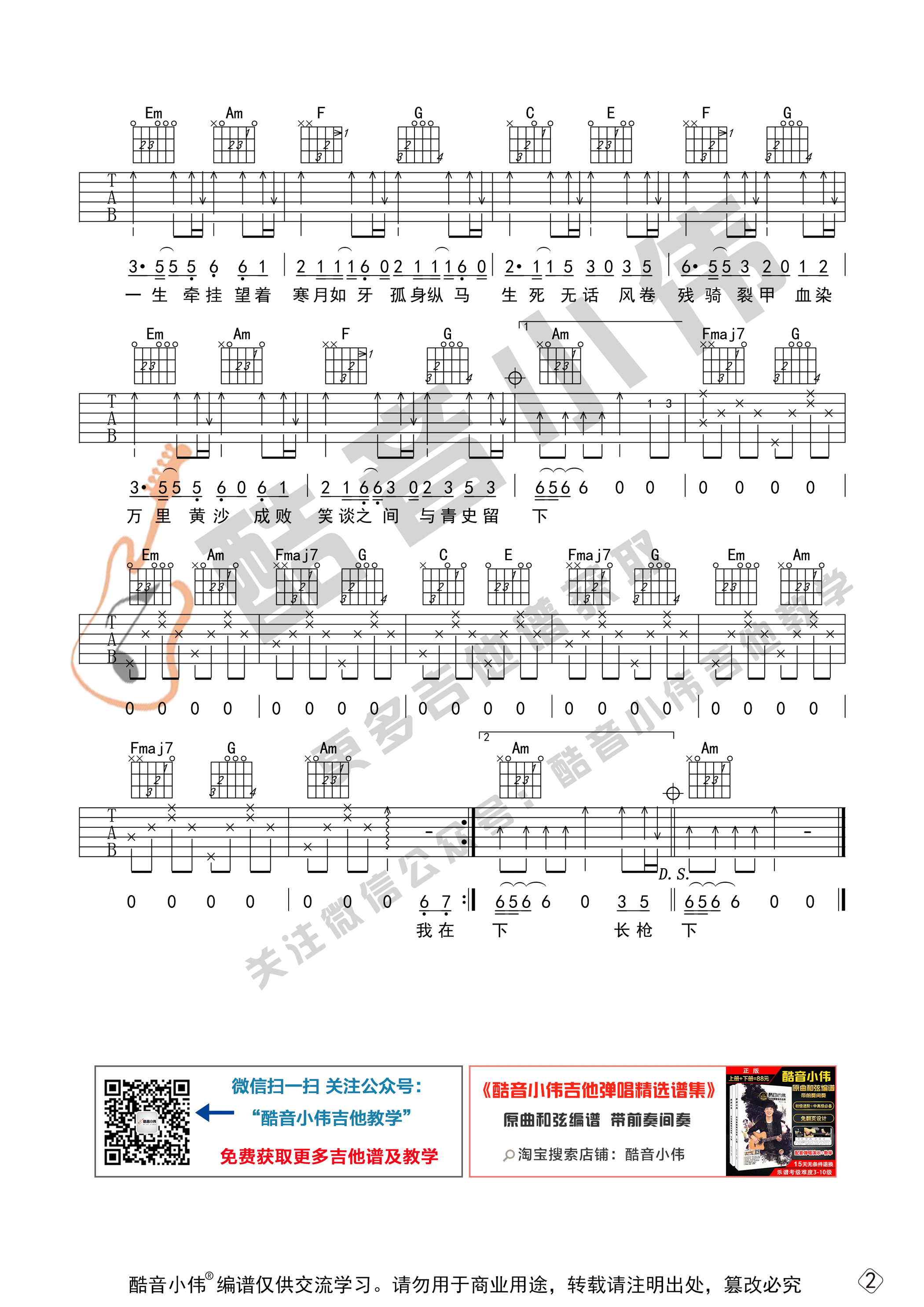《踏山河吉他谱》_是七叔呢_C调 图二