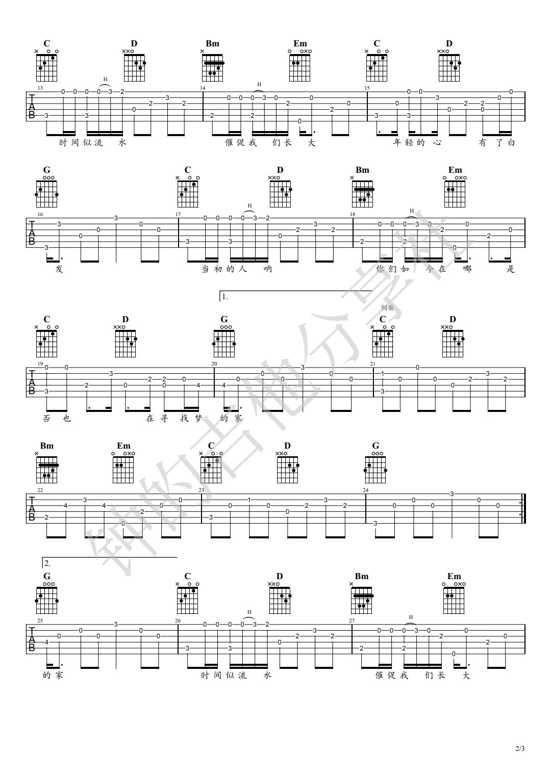 歌曲选自(逝年)专辑非常好听的弹唱曲谱,下面1 2 3高清曲谱由吉它自学网为大家更新分享,有喜欢吉它的朋友欢迎关注!