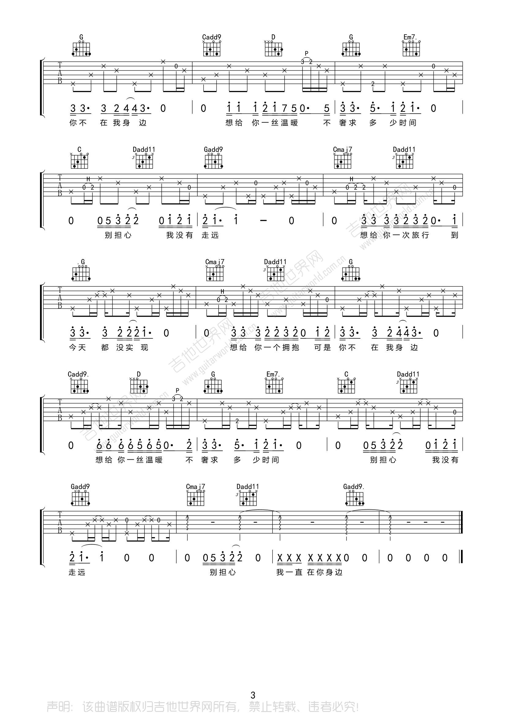 永远都会在吉他谱,原版歌曲,简单G调弹唱教学,六线谱指弹简谱3张图