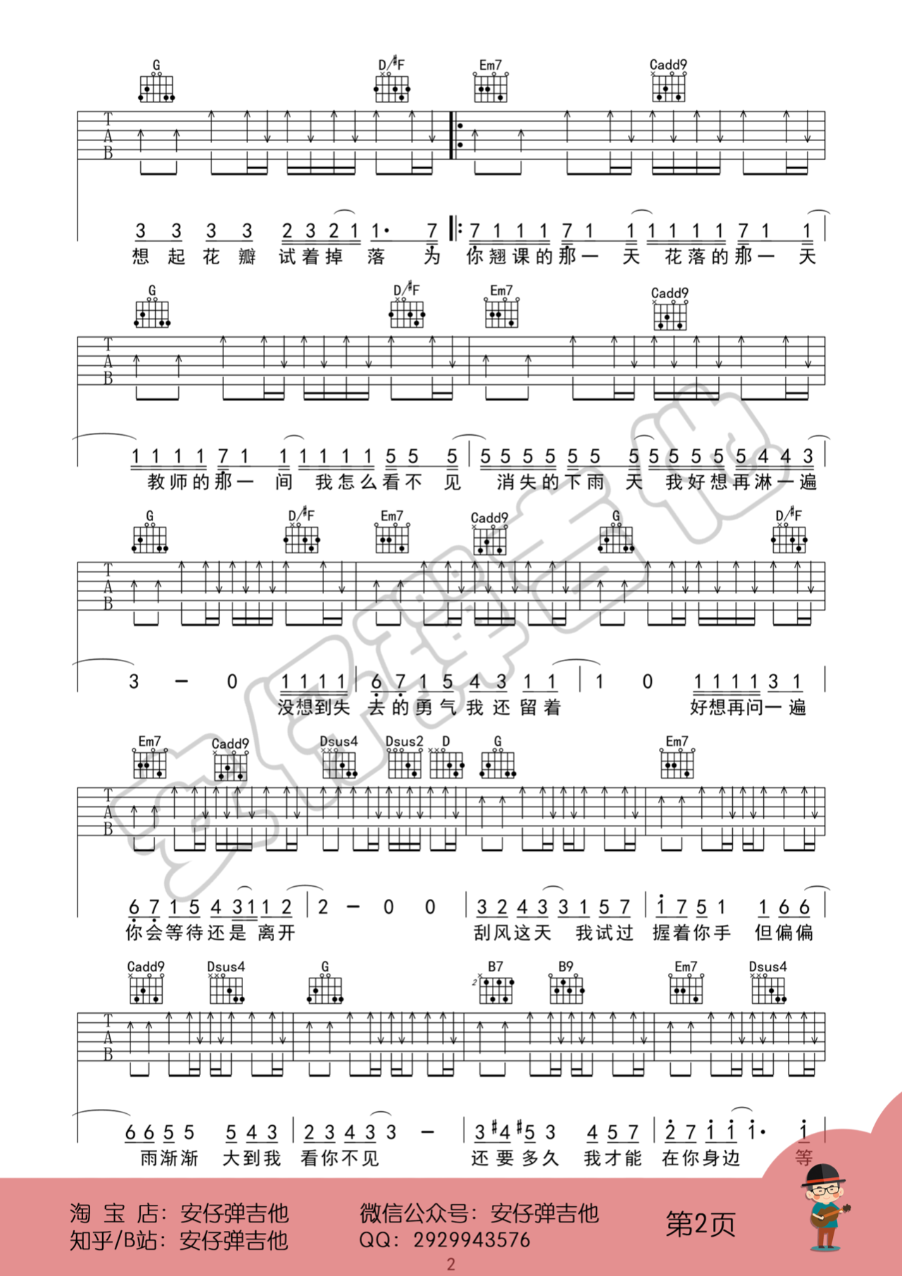 永远都会在吉他谱,取自演唱的歌曲是经典G调指弹编配的曲谱,非常好听的弹唱曲谱,下面3张高清曲谱由吉曲谱网为大家更新分享,有喜欢吉它的朋友欢迎关注!