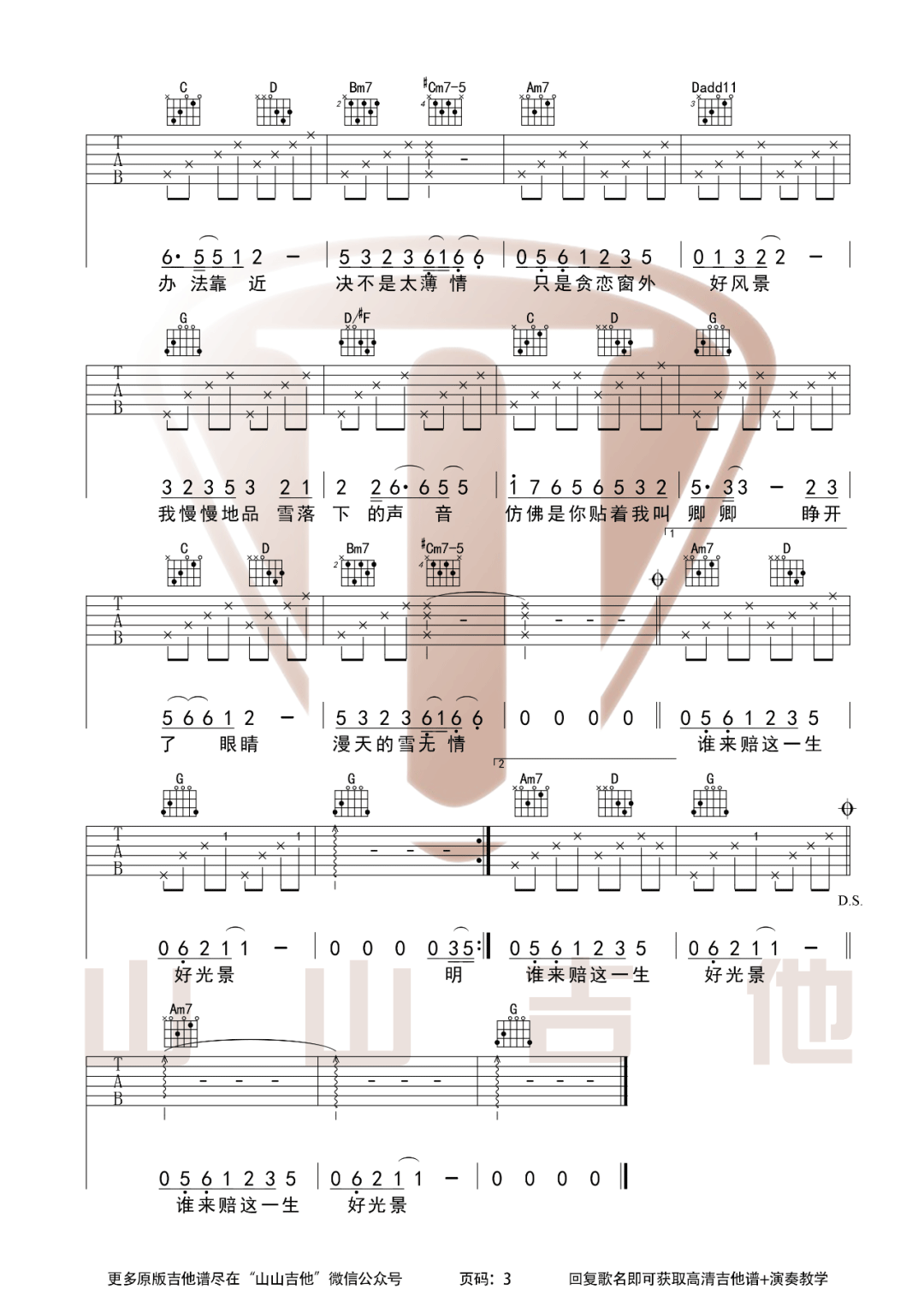 以上就是G调雪落下的声音吉它谱,如果正是您所寻找的林俊杰六线高清图片谱,希望能收藏本站,这里会源源不断更新各种的曲谱。