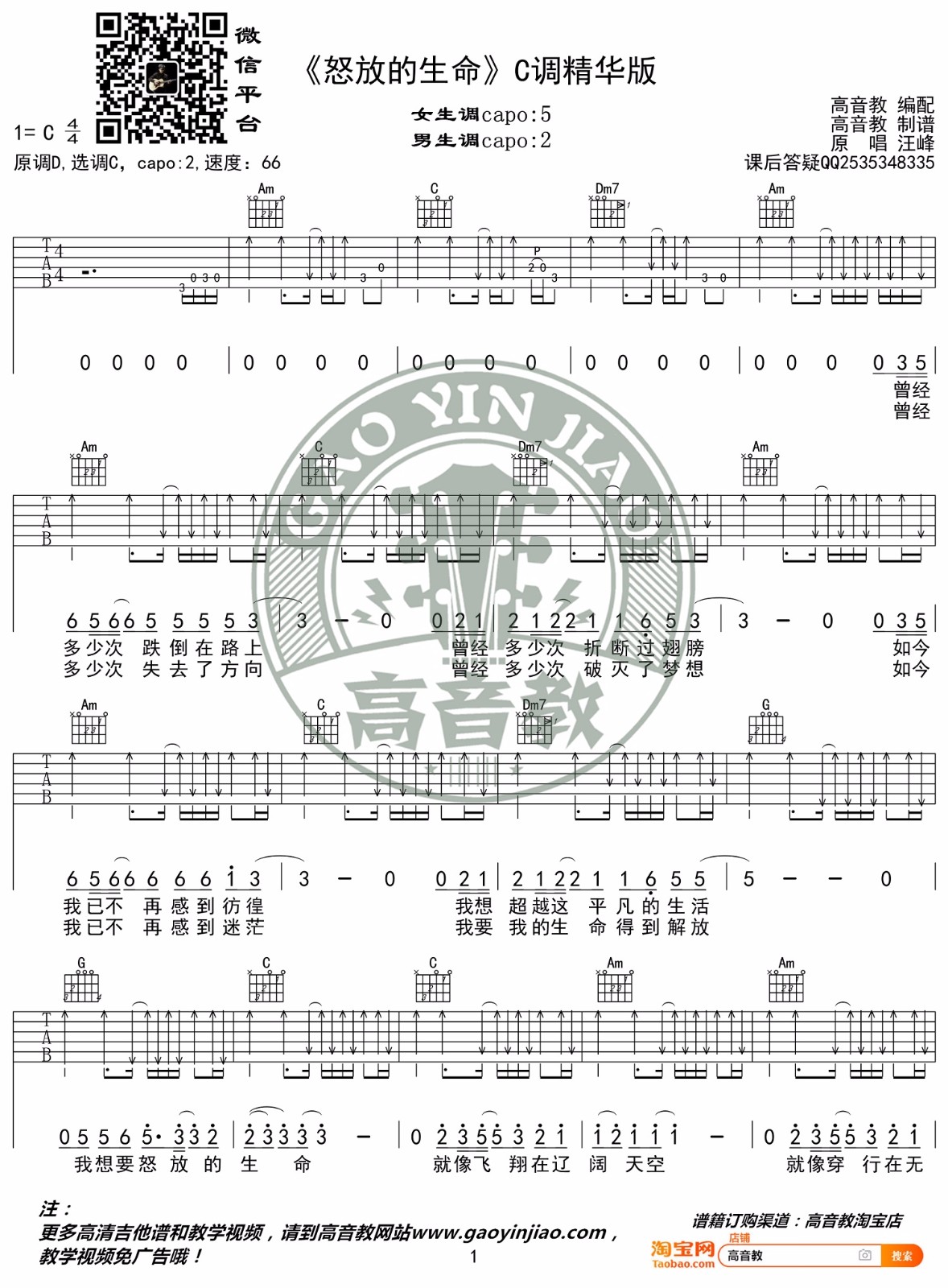 以上就是怒放的生命相关的内容,如果正是您所寻找的汪峰六线高清图片谱,希望能收藏本站,这里会源源不断更新各种的曲谱。