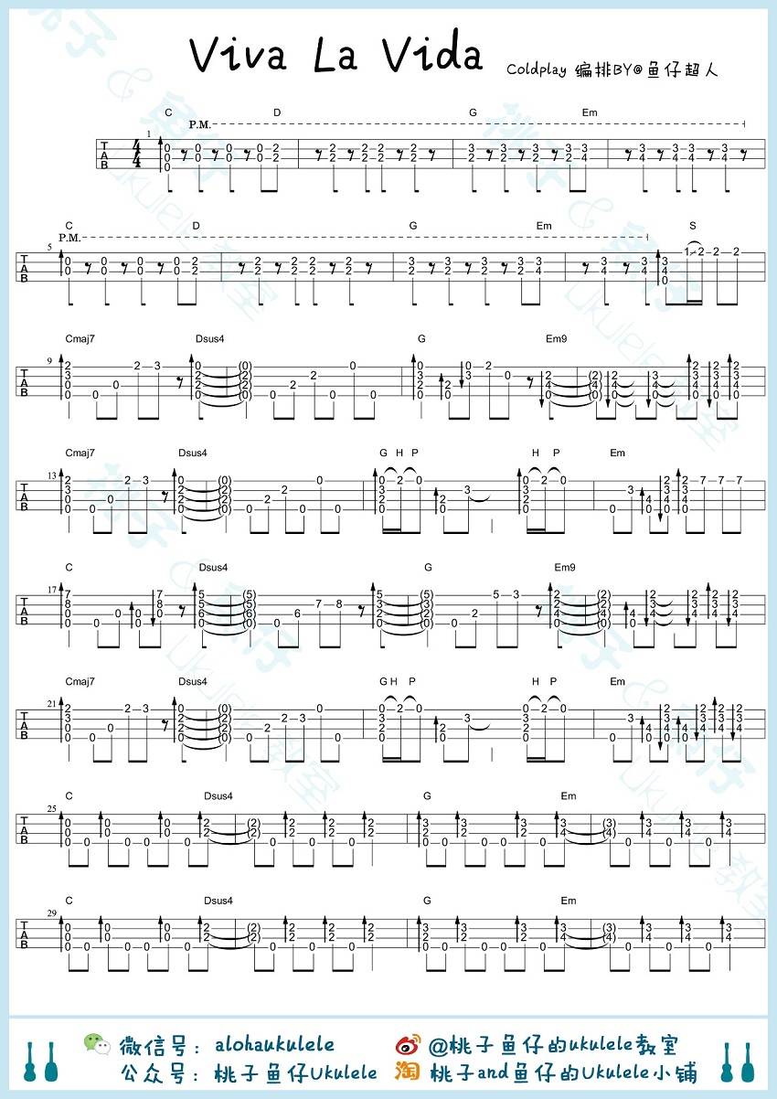 viva la vida吉他谱,它是Coldp演唱的原版歌曲,经典歌曲编配的指弹简单版吉他谱子,六线简谱是吉他坊整理制作,是非常好听的入门弹唱曲谱,
