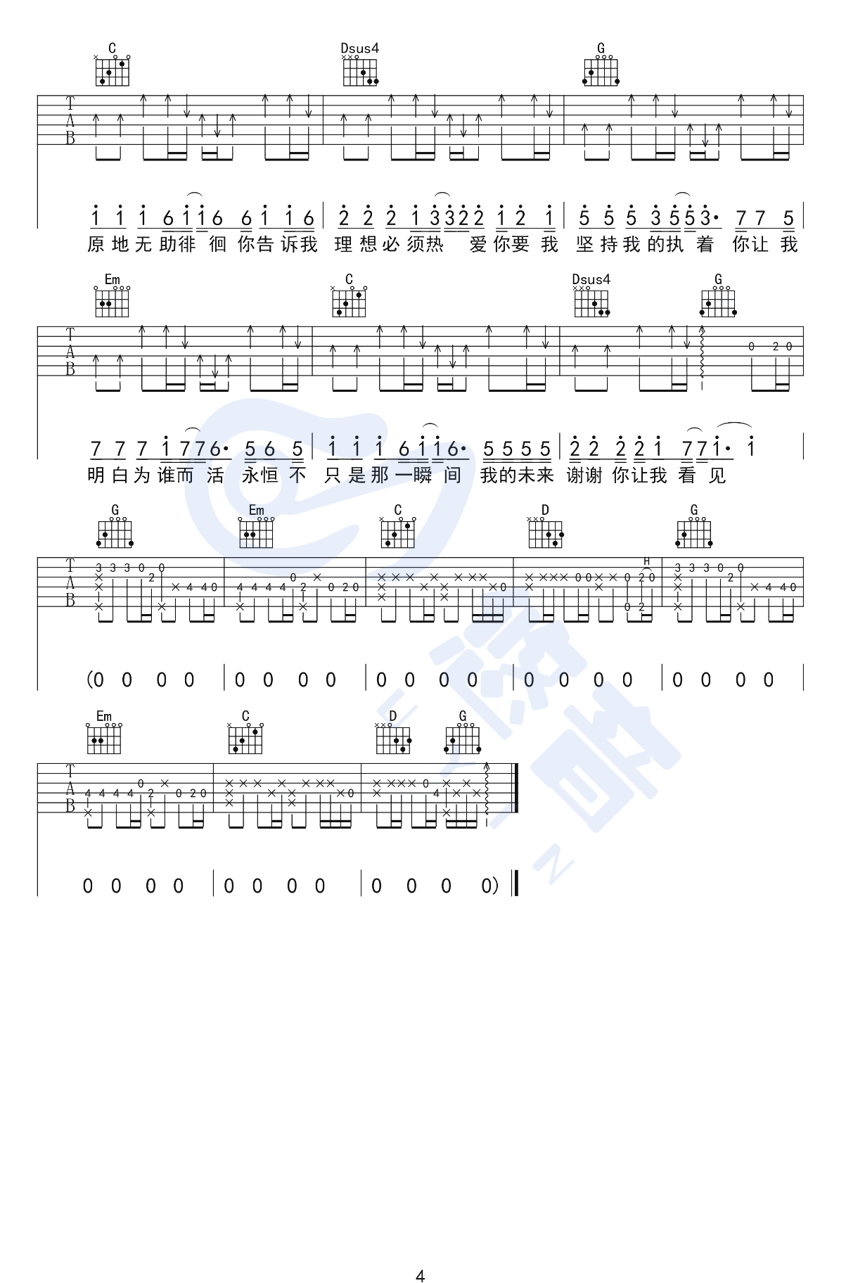 永远都会在吉他谱,取自演唱的歌曲是经典G调指弹编配的曲谱,非常好听的弹唱曲谱,下面3张高清曲谱由吉曲谱网为大家更新分享,有喜欢吉它的朋友欢迎关注!