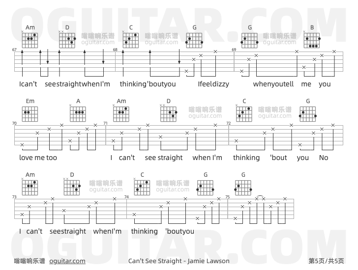 以上就是G调版的Can’tSeeStraight弹唱简谱,如果正是您所寻找的六线高清图片谱,希望能收藏本站,这里会源源不断更新各种Jamie Lawson的曲谱。