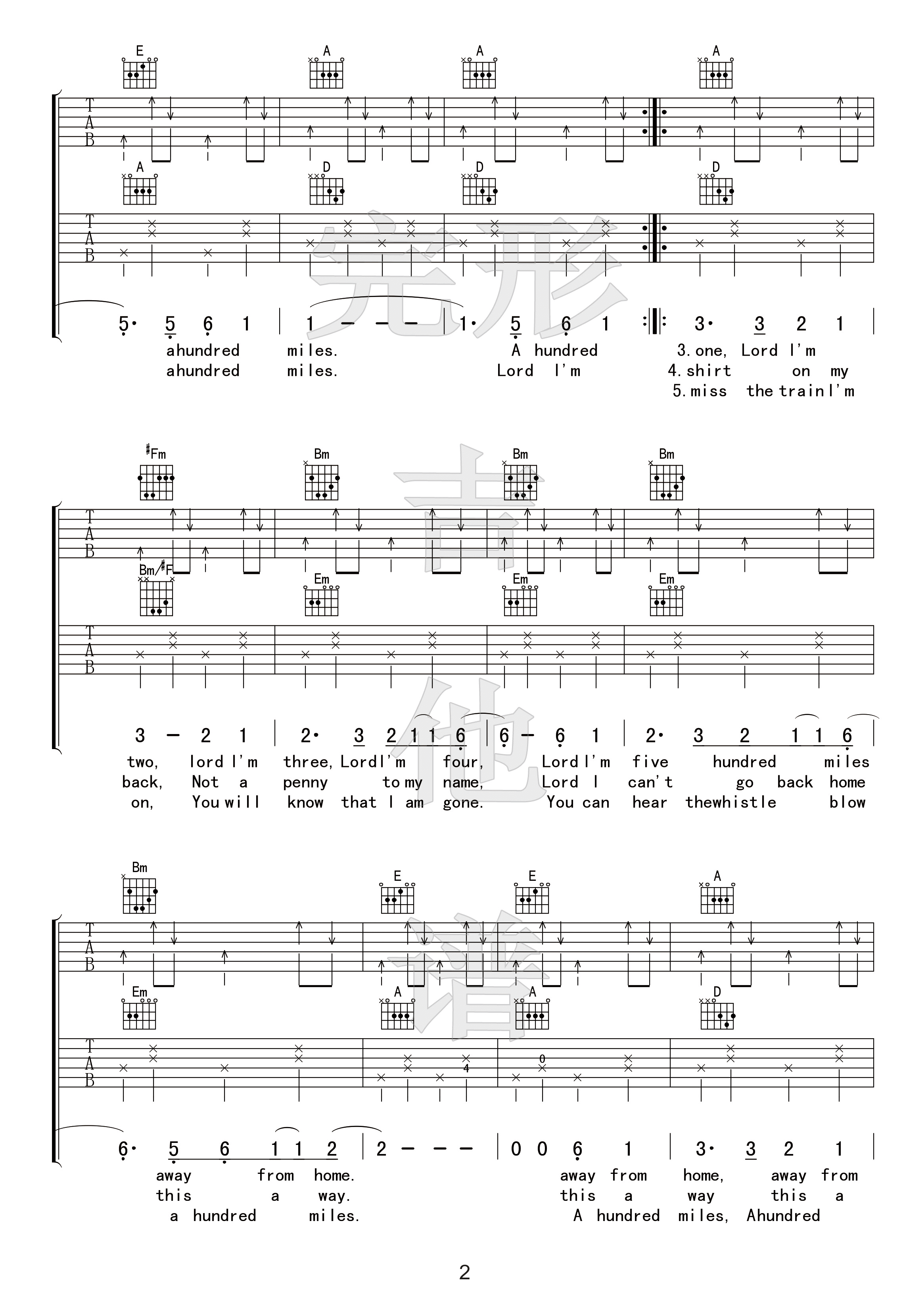 欧阳娜娜five hundre吉他谱,它是欧阳娜娜演唱的原版歌曲,这首歌真是太动人了.经典歌曲编配的D调吉他扫弦的形式弹奏,也可自由发挥。2张高清图片六线谱。500 Miles这首歌在站内还有其他曲调版本