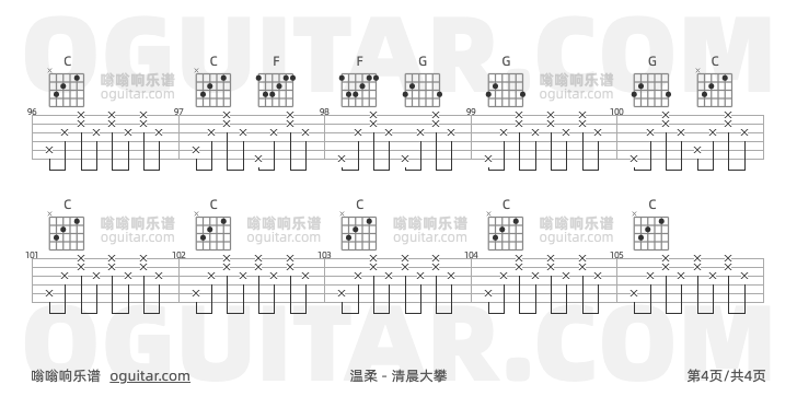 温柔吉他谱,清晨大攀歌曲,C调指弹简谱,4张教学六线谱