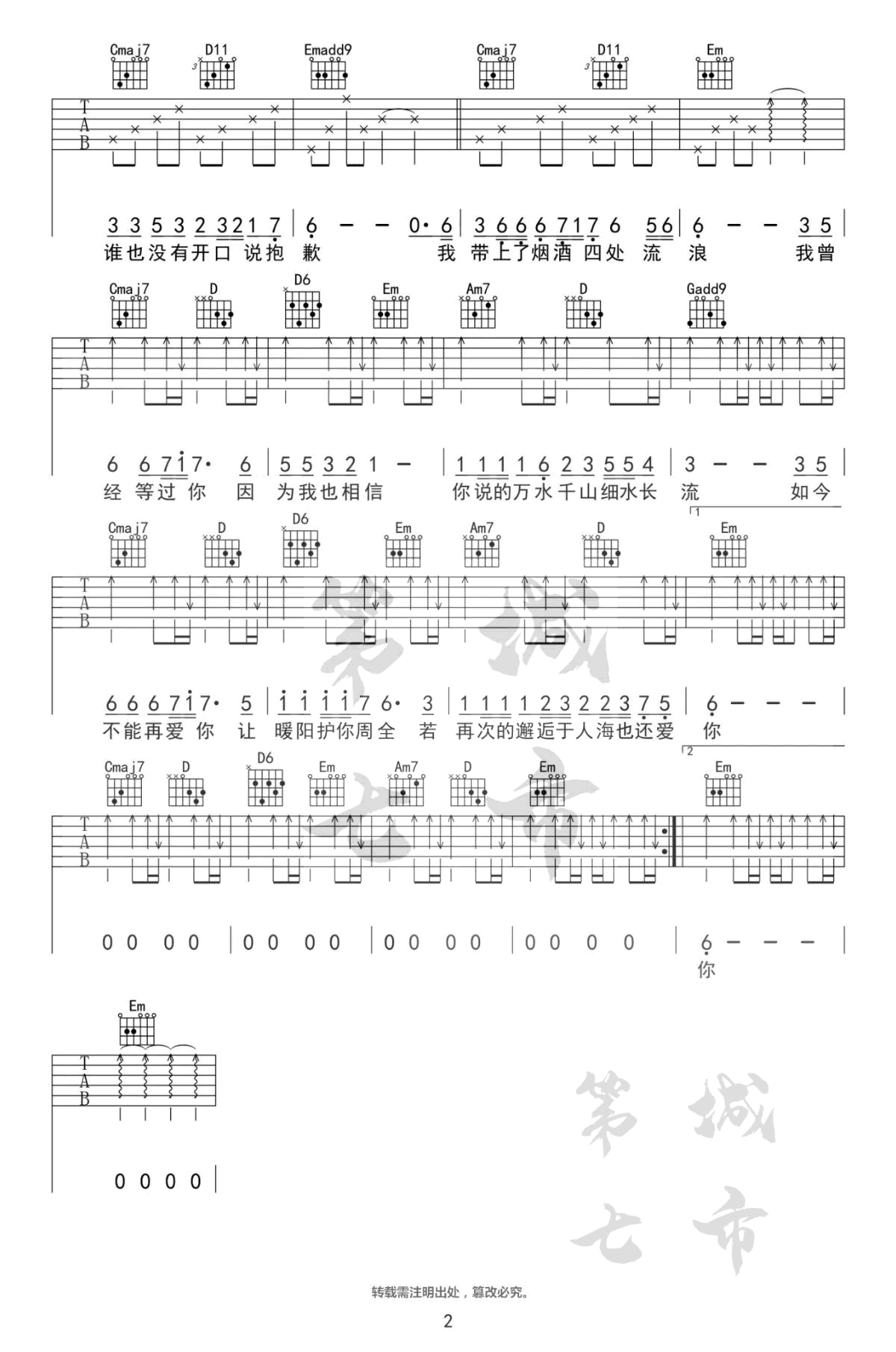 永远都会在吉他谱,取自演唱的歌曲是经典G调指弹编配的曲谱,非常好听的弹唱曲谱,下面3张高清曲谱由吉曲谱网为大家更新分享,有喜欢吉它的朋友欢迎关注!