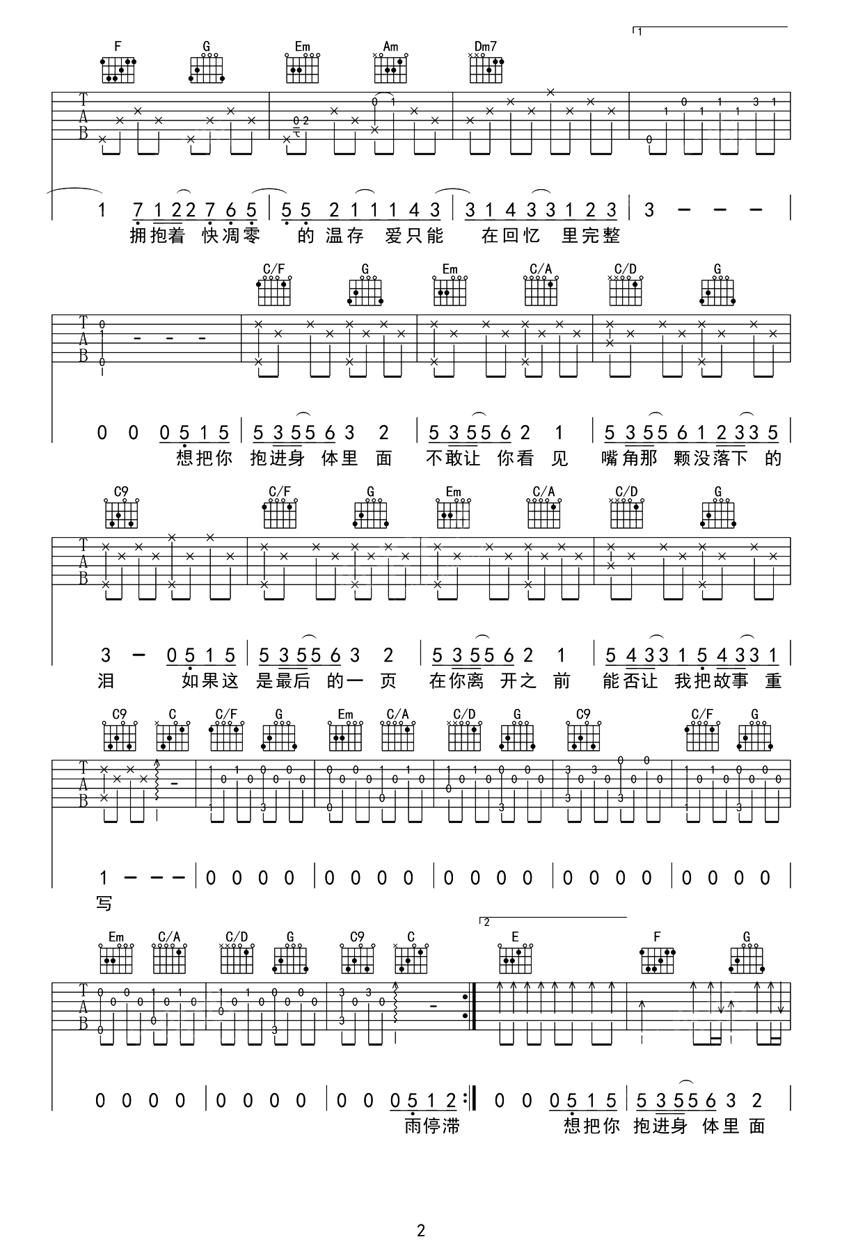 最后一页吉他谱,它是江语晨演唱的歌曲,由胡宝制谱,是一首经典歌曲编配的C调吉他谱,演唱时可"/>,本谱采用C调江语晨非常好听的弹唱曲谱,下面有三完整版高清曲谱由吉他谱大全为大家更新分享,有喜欢吉它的朋友欢迎关注!