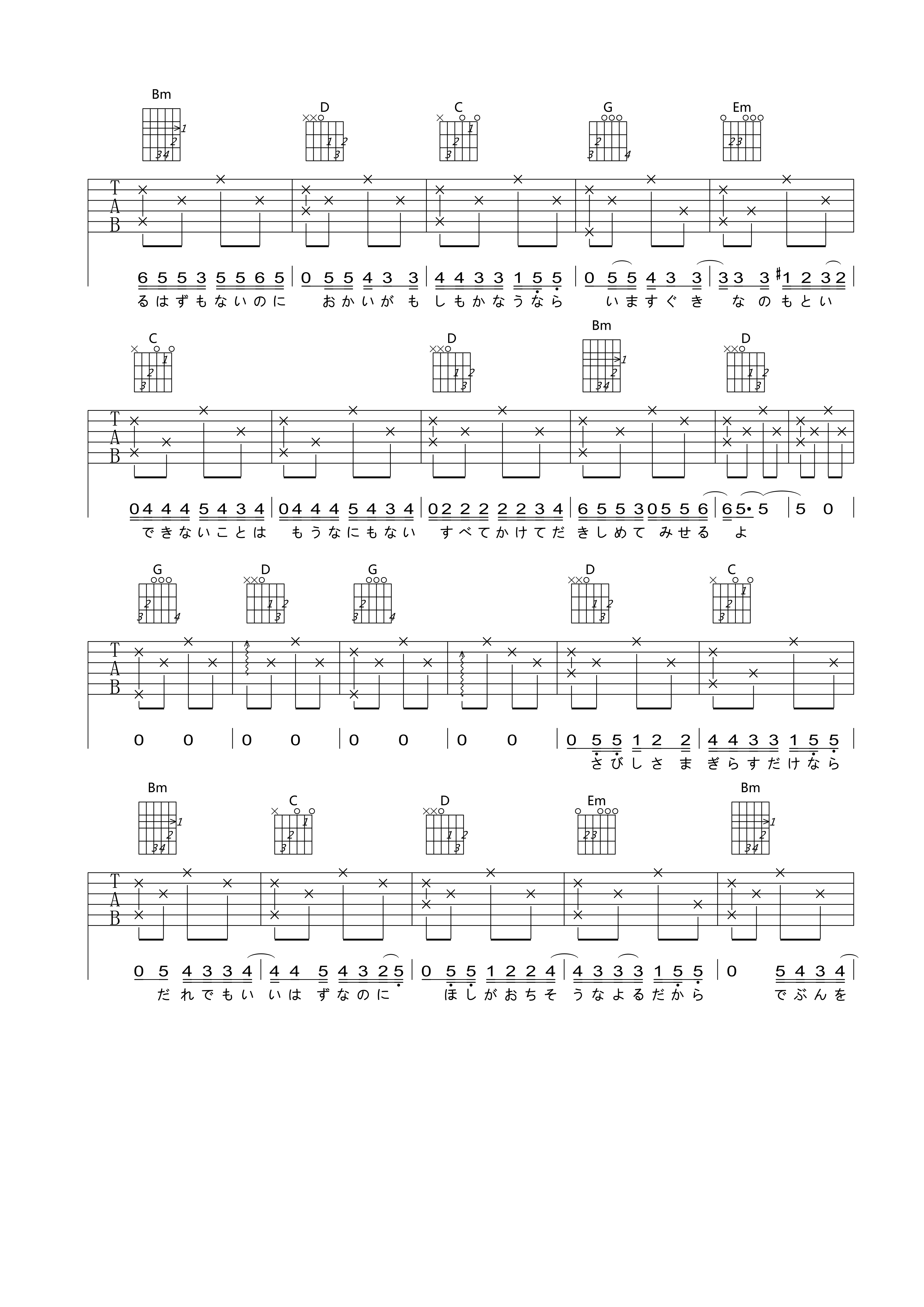 秒速五厘米One More T吉他谱,它是秒速五厘米演唱的原版歌曲,这首歌的节奏非常有节奏感.经典歌曲编配的G调">