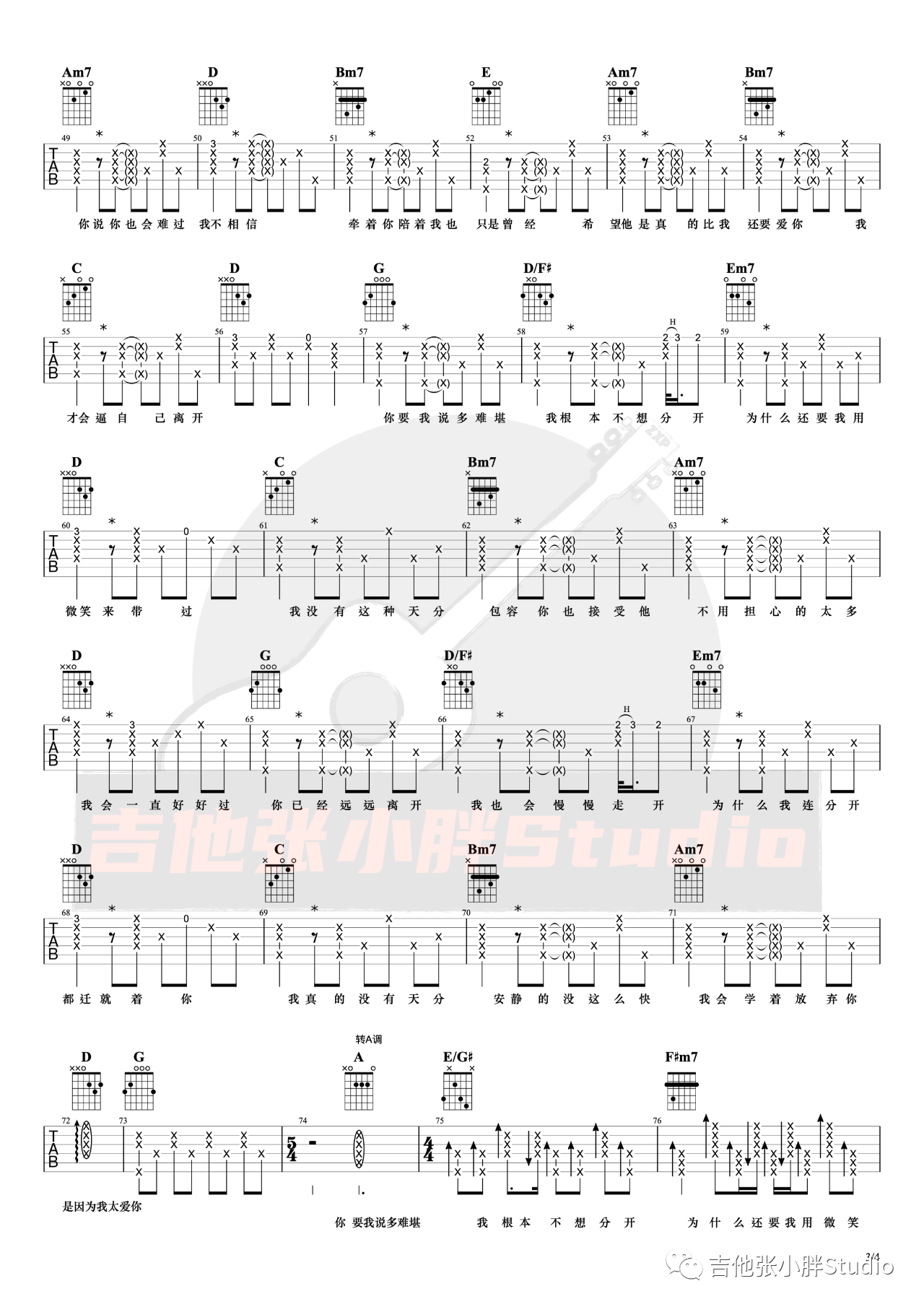 安静吉他谱,来自吉他张小胖编配制谱,G转A调精编版吉他弹唱谱,共四张图片谱例,附弹唱演示示范。演奏速度控制在每分钟74拍左右,演奏难度中等。