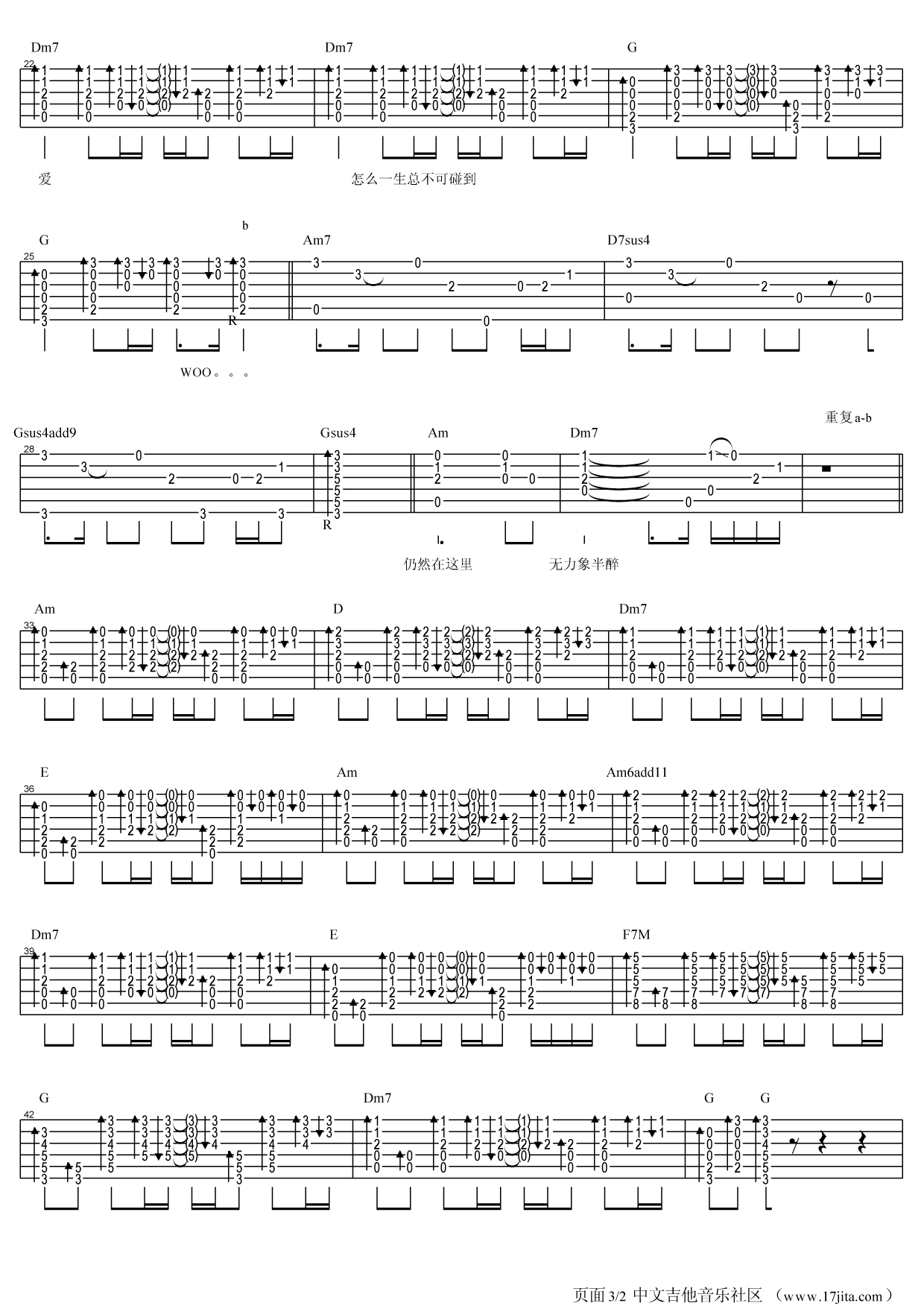 beyond无尽空虚吉他谱,简单G调原版指弹曲谱,beyon高清六线谱教程