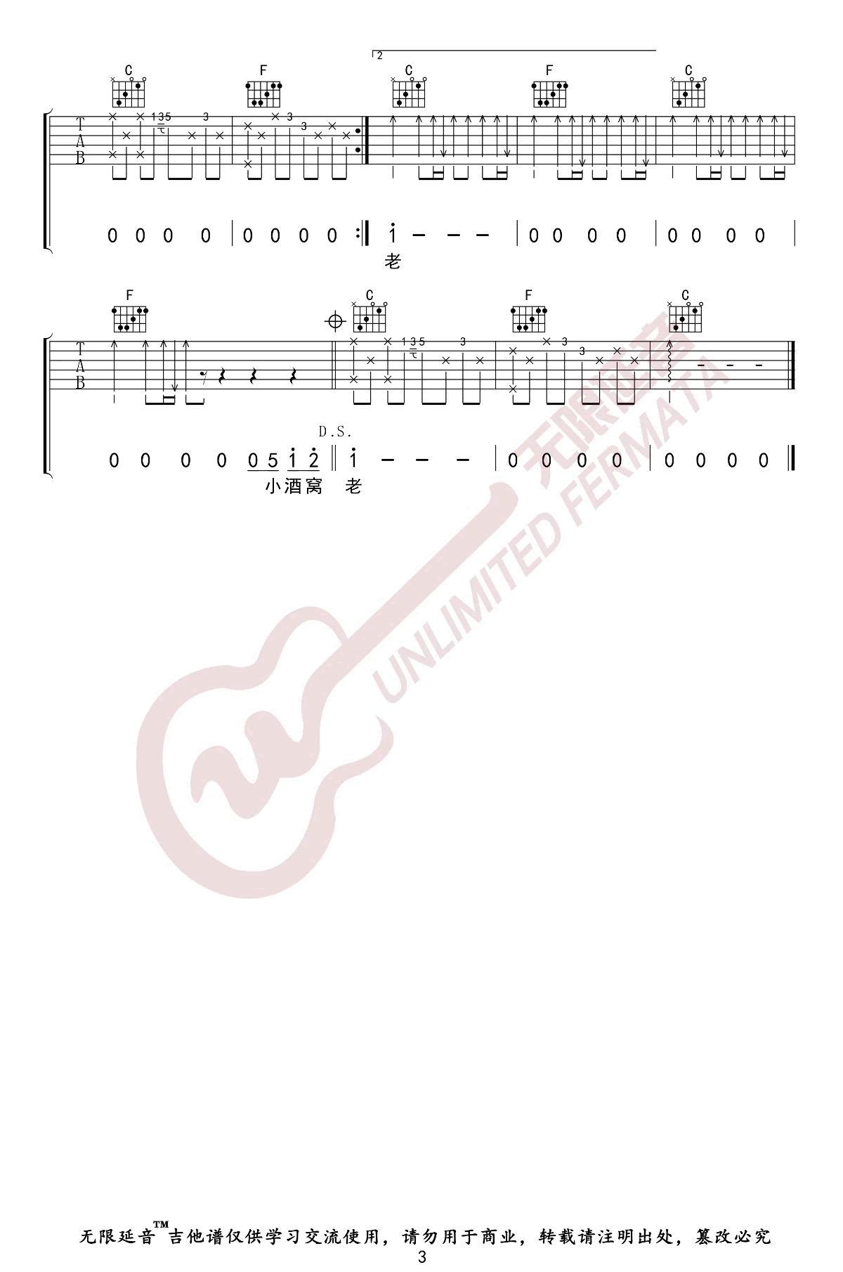小毛驴吉他谱,原版歌曲,简单C调弹唱教学,六线谱指弹简谱4张图