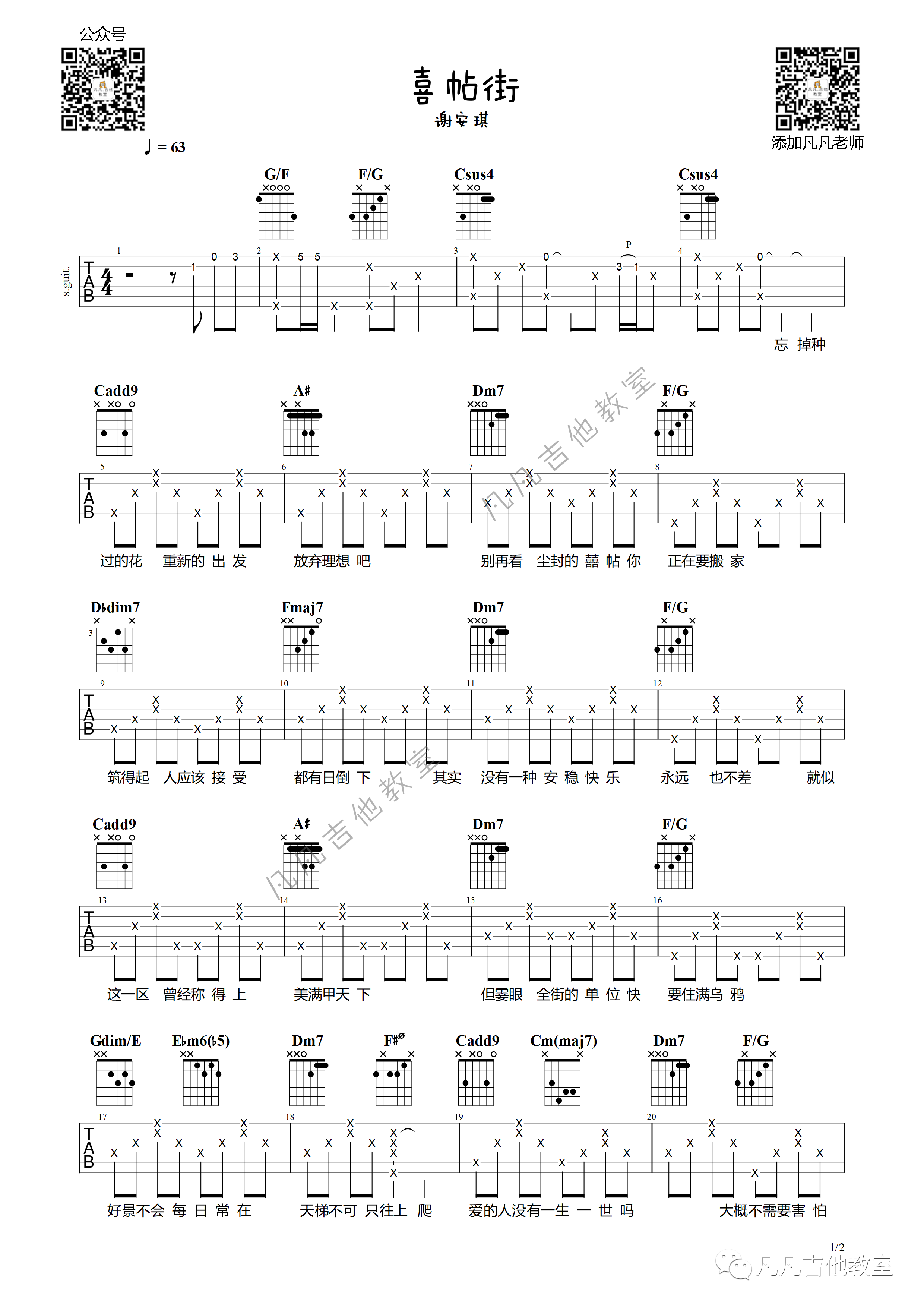 喜帖街吉他谱,它是演唱的原版歌曲这首歌的节奏非常紧凑,让人听了很兴奋。,由凡凡吉他教室制谱,是一首经典简单的吉他谱,适合新手学习和弦指弹的吉他编配曲谱,弹唱时可,本次教学采用吉他,是非常好听的弹唱曲谱,下面完整版高清六线谱由吉它谱大全为大家更新分享。有喜欢吉它的朋友欢迎关注!