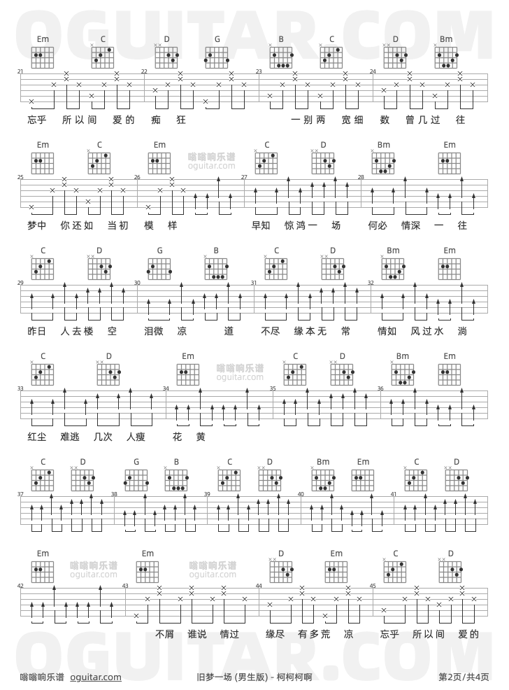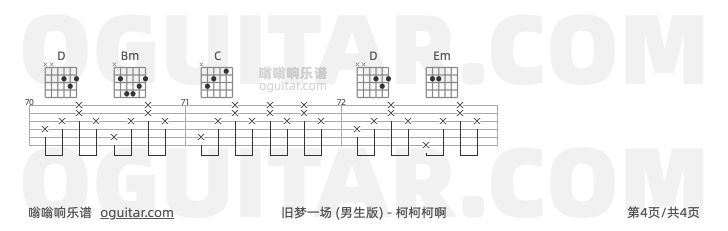 旧梦一场吉他谱,柯柯柯啊歌曲,G调指弹简谱,4张教学六线谱【男生版】