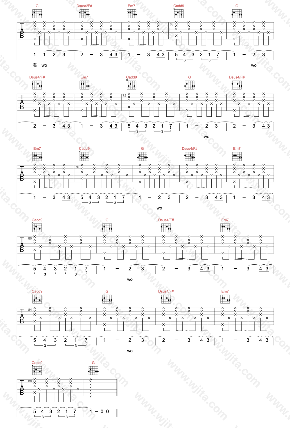 静止吉他谱,取自演唱的歌曲是经典G调指弹编配的曲谱,非常好听的弹唱曲谱,下面4张高清曲谱由吉曲谱网为大家更新分享,有喜欢吉它的朋友欢迎关注!