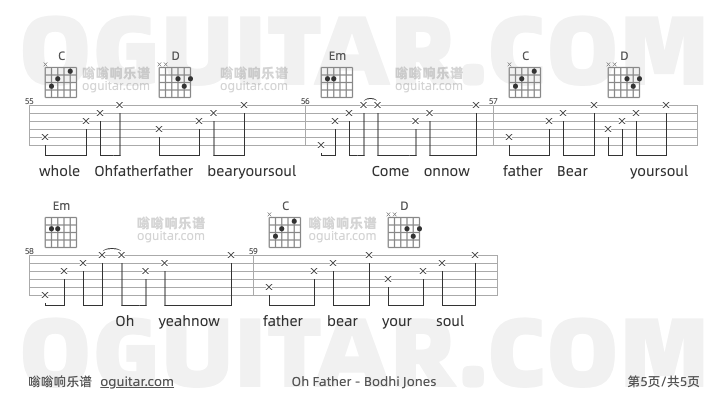 OhFather吉他谱,Bodhi Jones歌曲,G调指弹简谱,5张教学六线谱