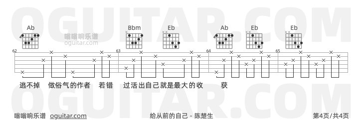 给从前的自己吉他谱,陈楚生歌曲,G调指弹简谱,4张教学六线谱