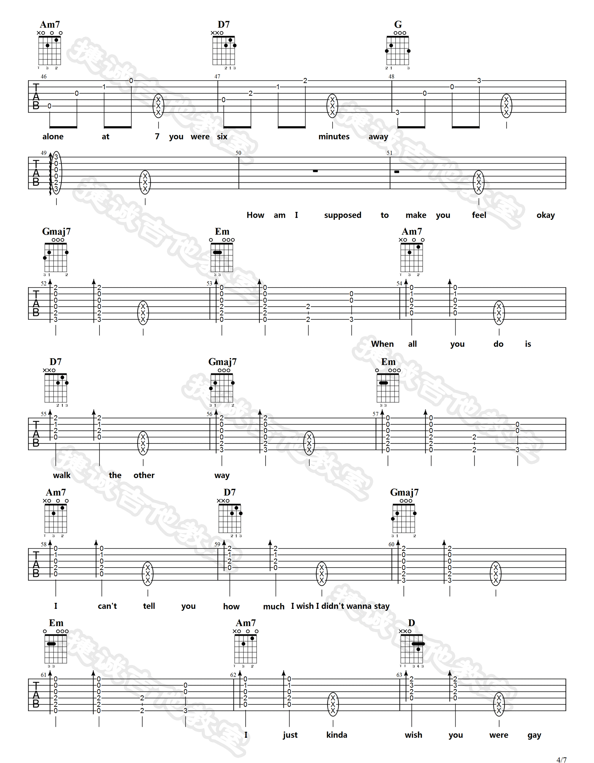 Wish-You-Were-Gay吉他谱是Billie-Eilish演唱的一首好听的歌曲,采用G调原版吉他弹奏。演唱时不夹变调夹即可保持原调,也可根据个人嗓音情况选择,,也可自由发挥。。。
