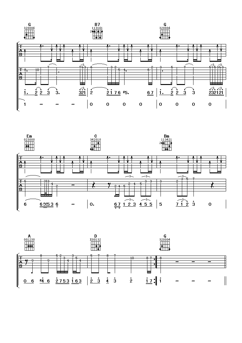 静止吉他谱,取自演唱的歌曲是经典G调指弹编配的曲谱,非常好听的弹唱曲谱,下面4张高清曲谱由吉曲谱网为大家更新分享,有喜欢吉它的朋友欢迎关注!