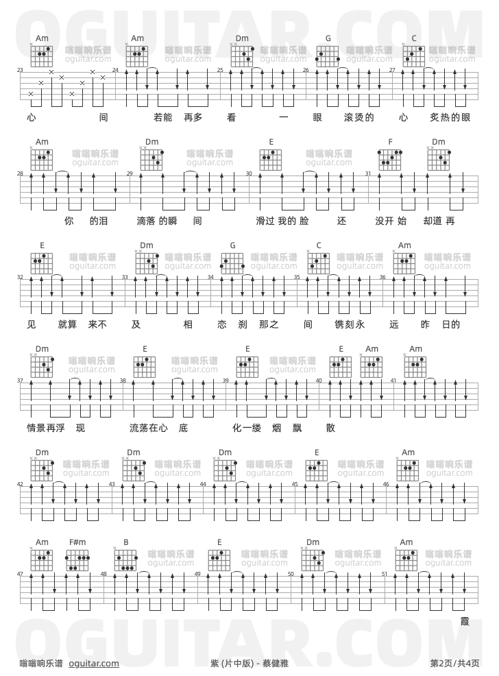 紫吉他谱,蔡健雅歌曲,C调指弹简谱,4张教学六线谱【片中版】