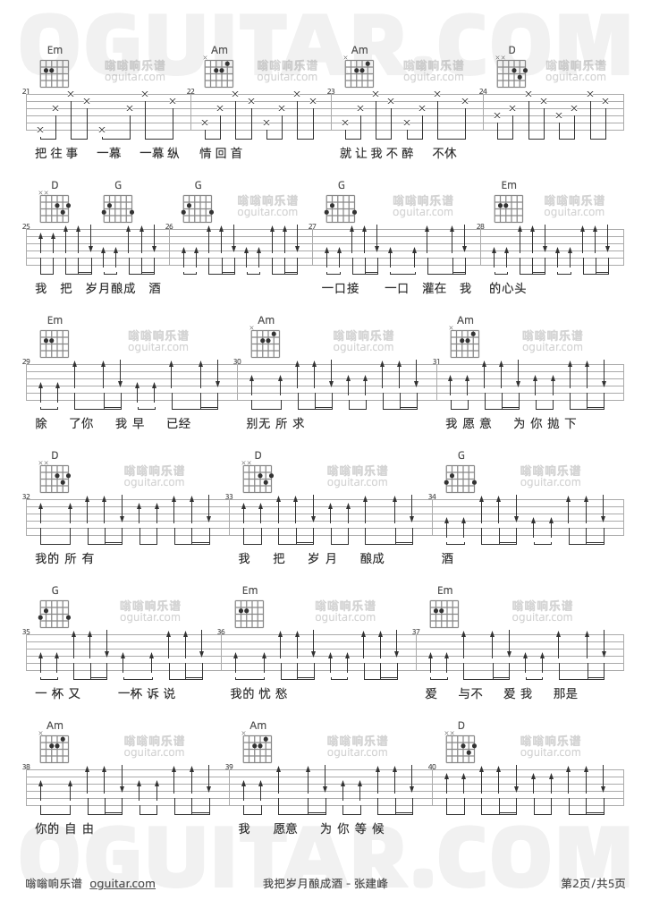我把岁月酿成酒吉他谱,张建峰歌曲,G调指弹简谱,5张教学六线谱