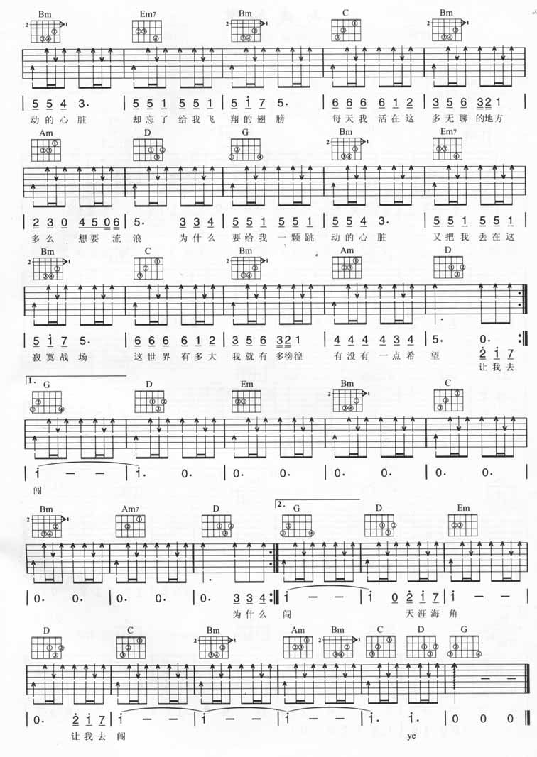 闯吉他谱,五月天歌曲,C调指弹简谱,新手弹唱扫弦版