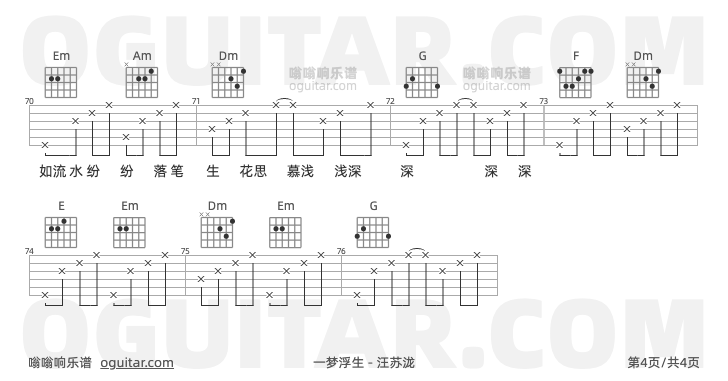 一梦浮生吉他谱,汪苏泷歌曲,C调指弹简谱,4张教学六线谱
