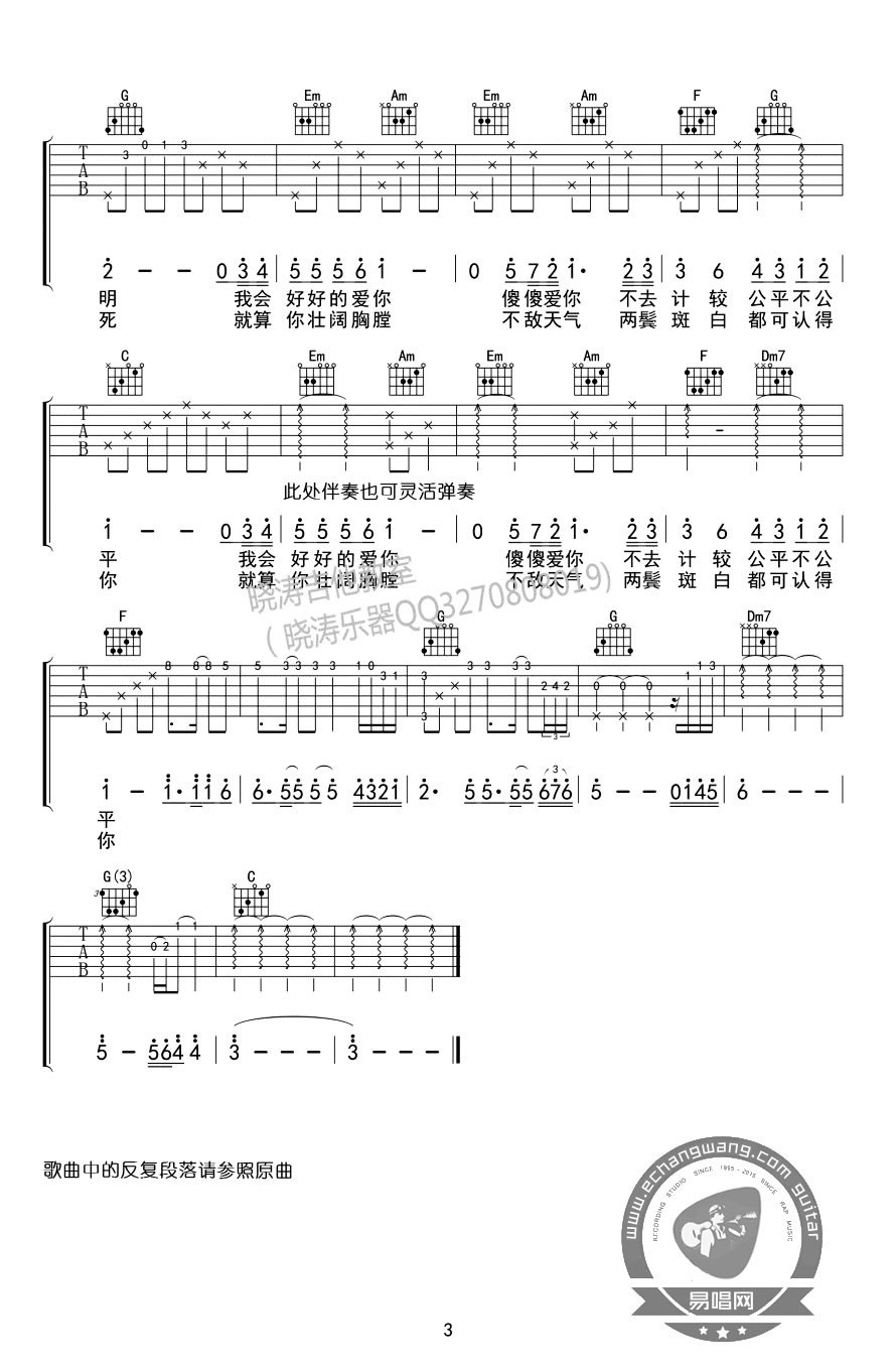 约定吉他谱,原版陈奕迅歌曲,简单C调指弹曲谱,高清六线乐谱