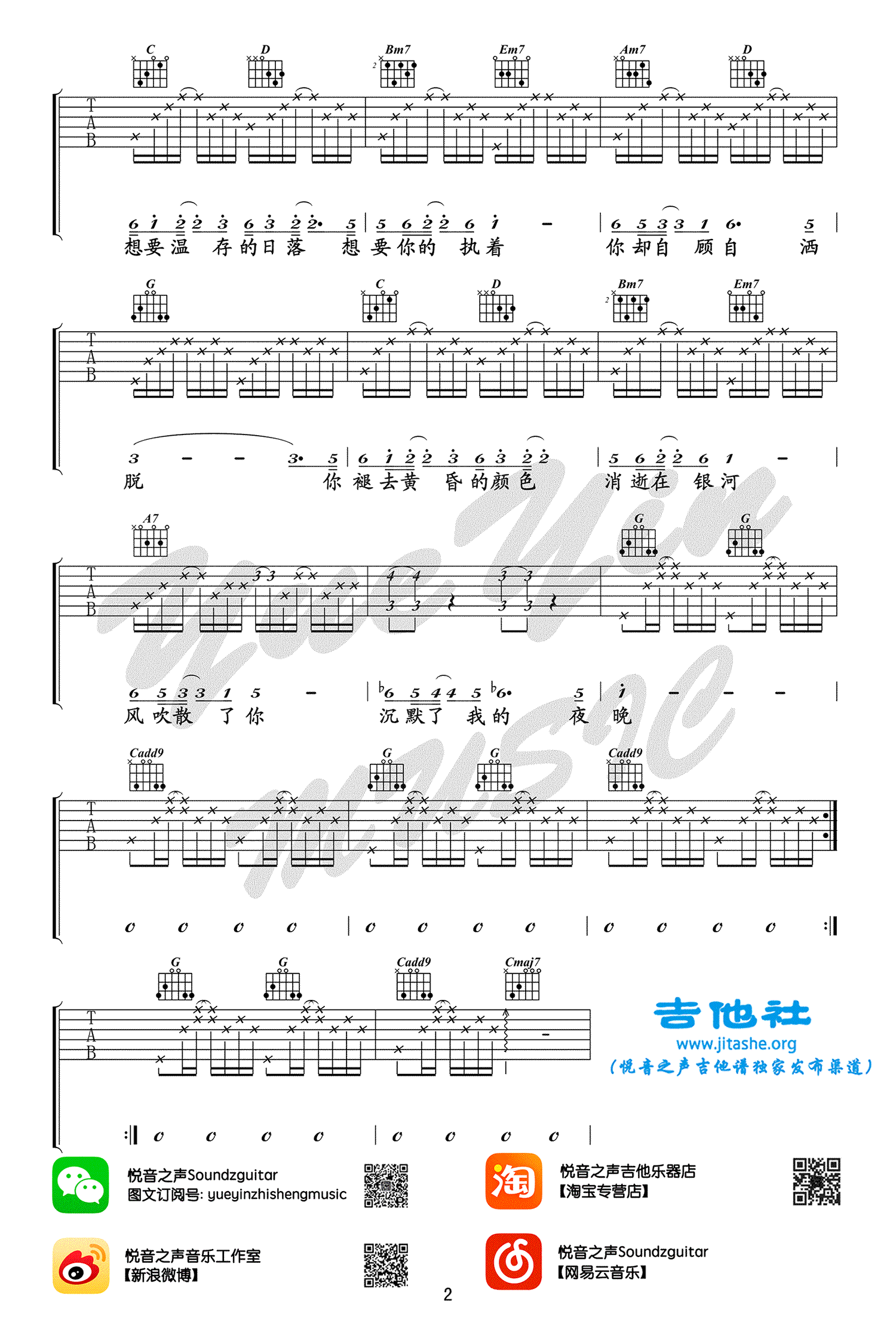 静止吉他谱,取自演唱的歌曲是经典G调指弹编配的曲谱,非常好听的弹唱曲谱,下面4张高清曲谱由吉曲谱网为大家更新分享,有喜欢吉它的朋友欢迎关注!