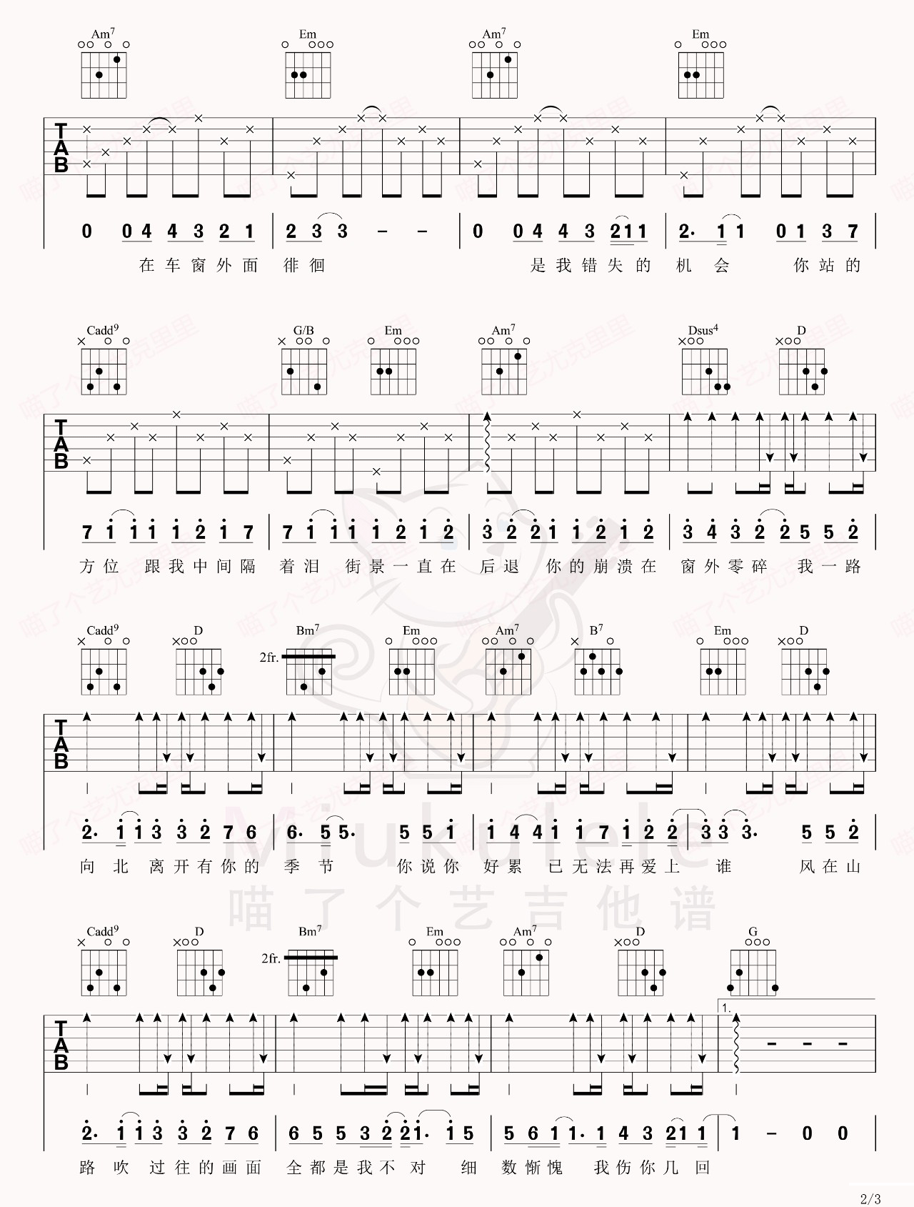 Untux Uqun Aslax吉他谱,原版歌曲,简单G调弹唱教学,六线谱指弹简谱3张图