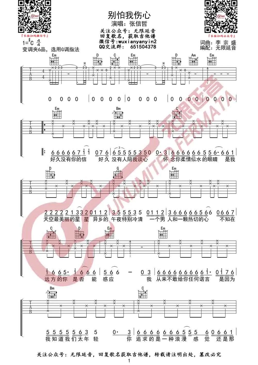 别怕我伤心吉他谱吉他谱是张信哲演唱的一首好听的歌曲,采用G调原版吉他弹奏,。演唱时不夹变调夹即可保持原调,也可根据个人嗓音情况选择,,也可自由发挥。。。