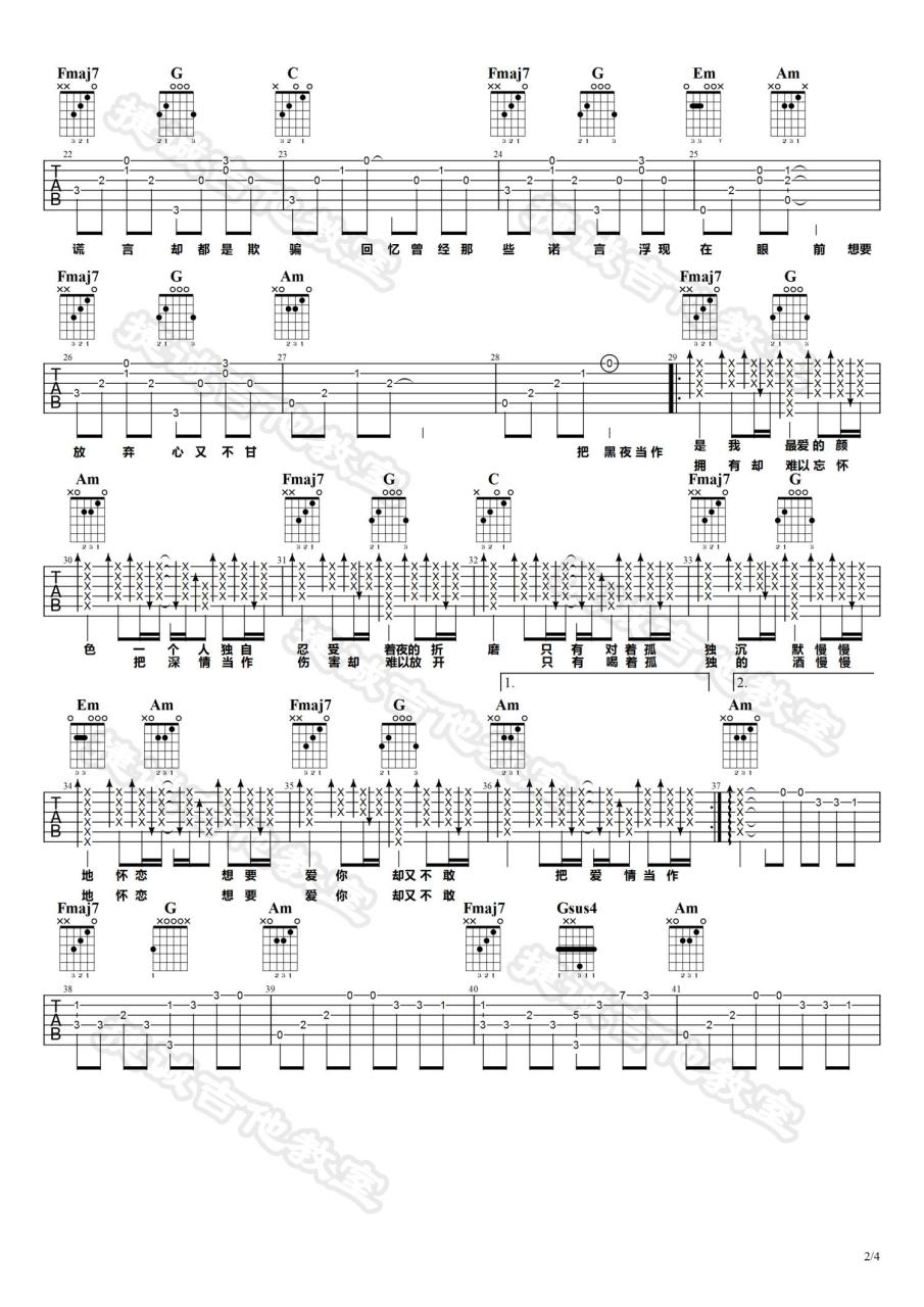 不删吉他谱,原版井胧歌曲,简单C调指弹曲谱,高清六线乐谱