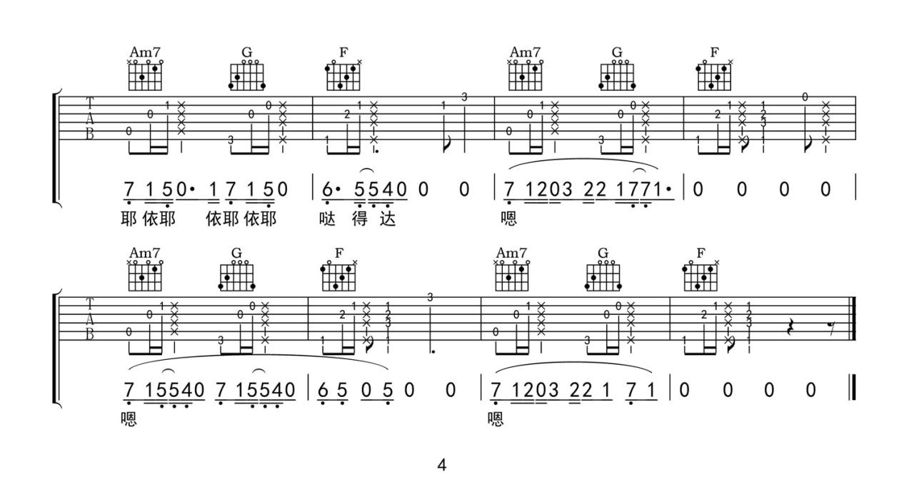 我不会喜欢你吉他谱,原版歌曲,简单E调弹唱教学,六线谱指弹简谱4张图