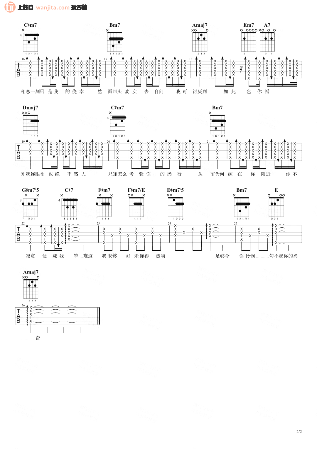 靠近吉他谱,取自演唱的歌曲是经典A调指弹编配的曲谱,非常好听的弹唱曲谱,下面2张高清曲谱由吉曲谱网为大家更新分享,有喜欢吉它的朋友欢迎关注!