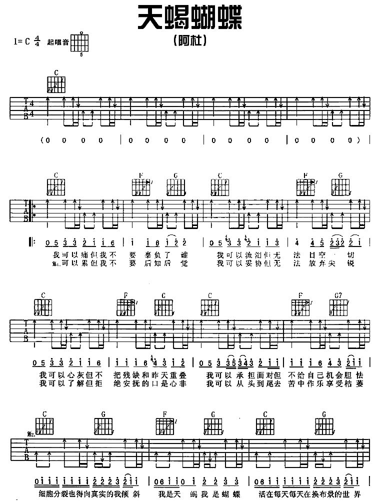 窦唯上帝保佑吉他谱,简单原版弹唱曲谱,窦唯高清六线谱教程