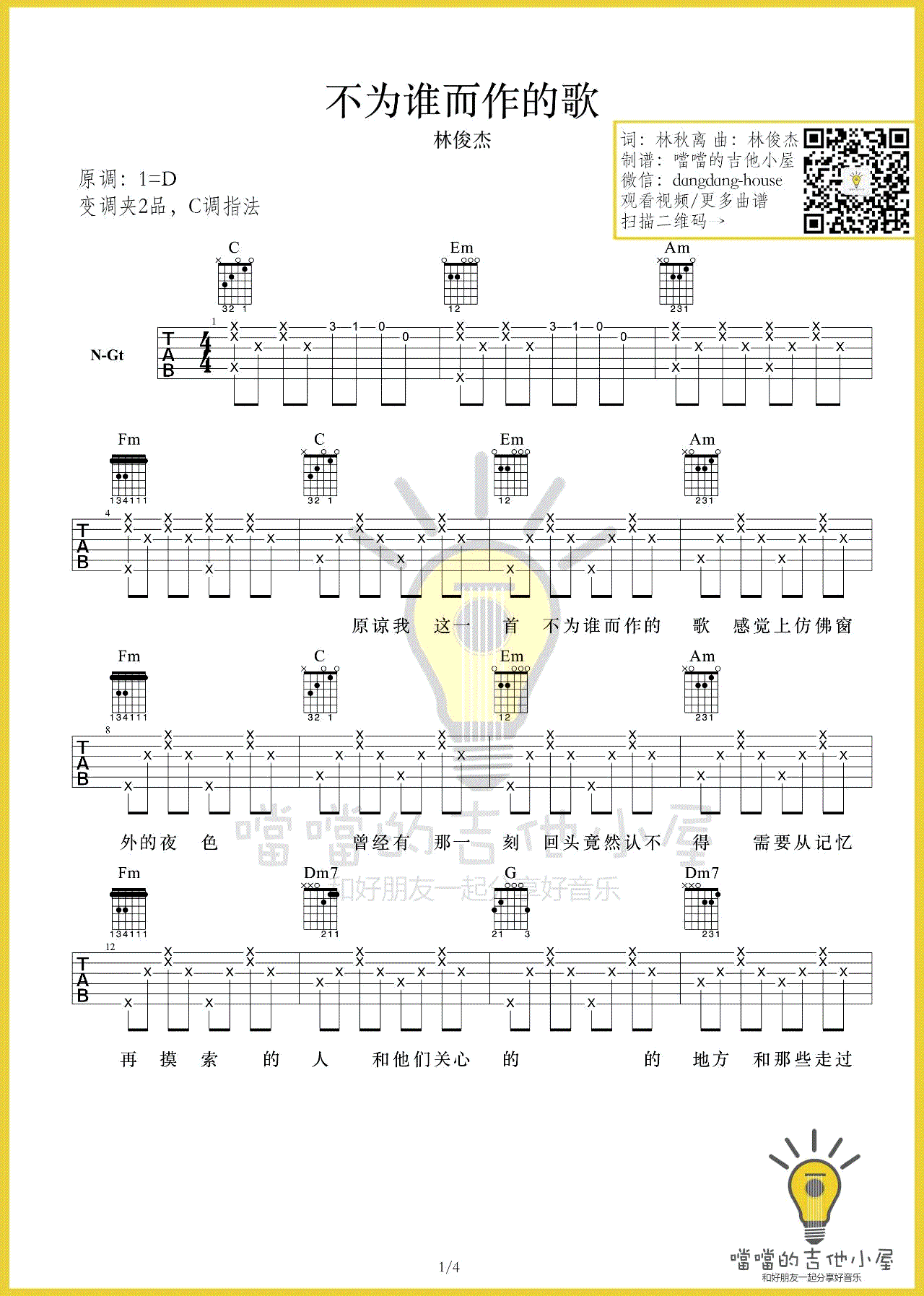 无声的你吉他谱,取自演唱的歌曲是经典C调指弹编配的曲谱,非常好听的弹唱曲谱,下面1张高清曲谱由吉曲谱网为大家更新分享,有喜欢吉它的朋友欢迎关注!