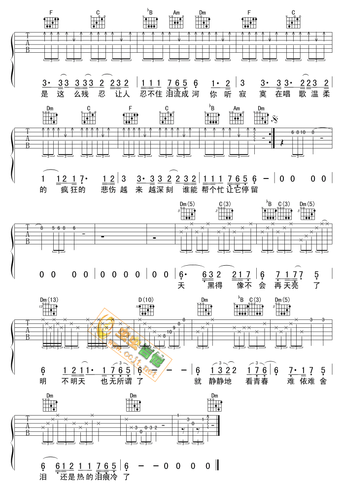 F C bB A7 Dm 歌声是这麼残忍让人忍不住泪流成河