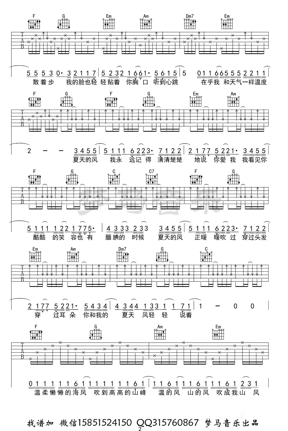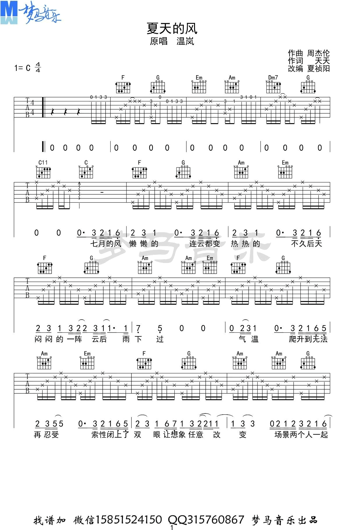 以上就是C调夏天的风吉它谱,如果正是您所寻找的温岚六线高清图片谱,希望能收藏本站,这里会源源不断更新各种的曲谱。