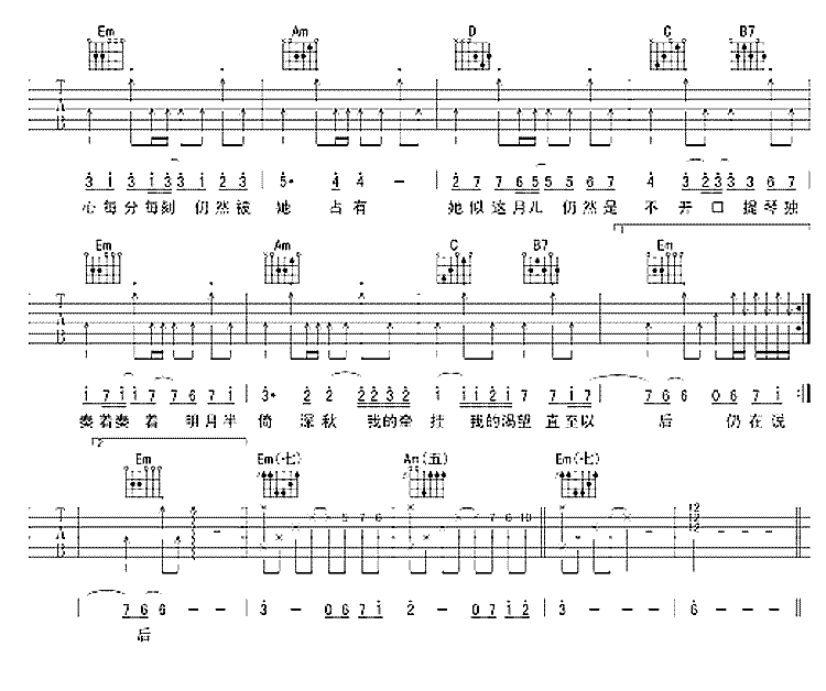 以上就是4/4节拍G调版的月半小夜曲弹唱简谱完整内容,希望这个简单六线高清图片教学谱能帮到您,也希望您能收藏本站,这里每天源源不断更新各种简单入门曲谱。