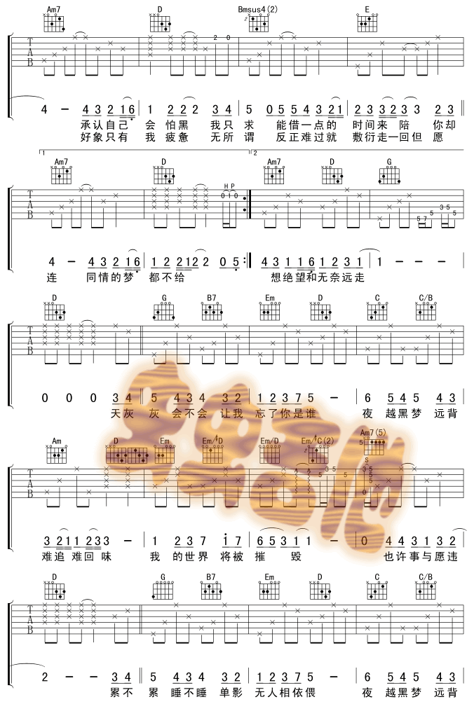 世界末日吉他谱,它是演唱的歌曲,是一首经典歌曲编配的原版钢指弹六线简谱,歌词让我感到深深的共鸣。是非常好听又简单的吉他弹唱曲谱,下面4张高清完整版图片谱由曲谱网为大家更新分享,有喜欢吉它的朋友欢迎关注!