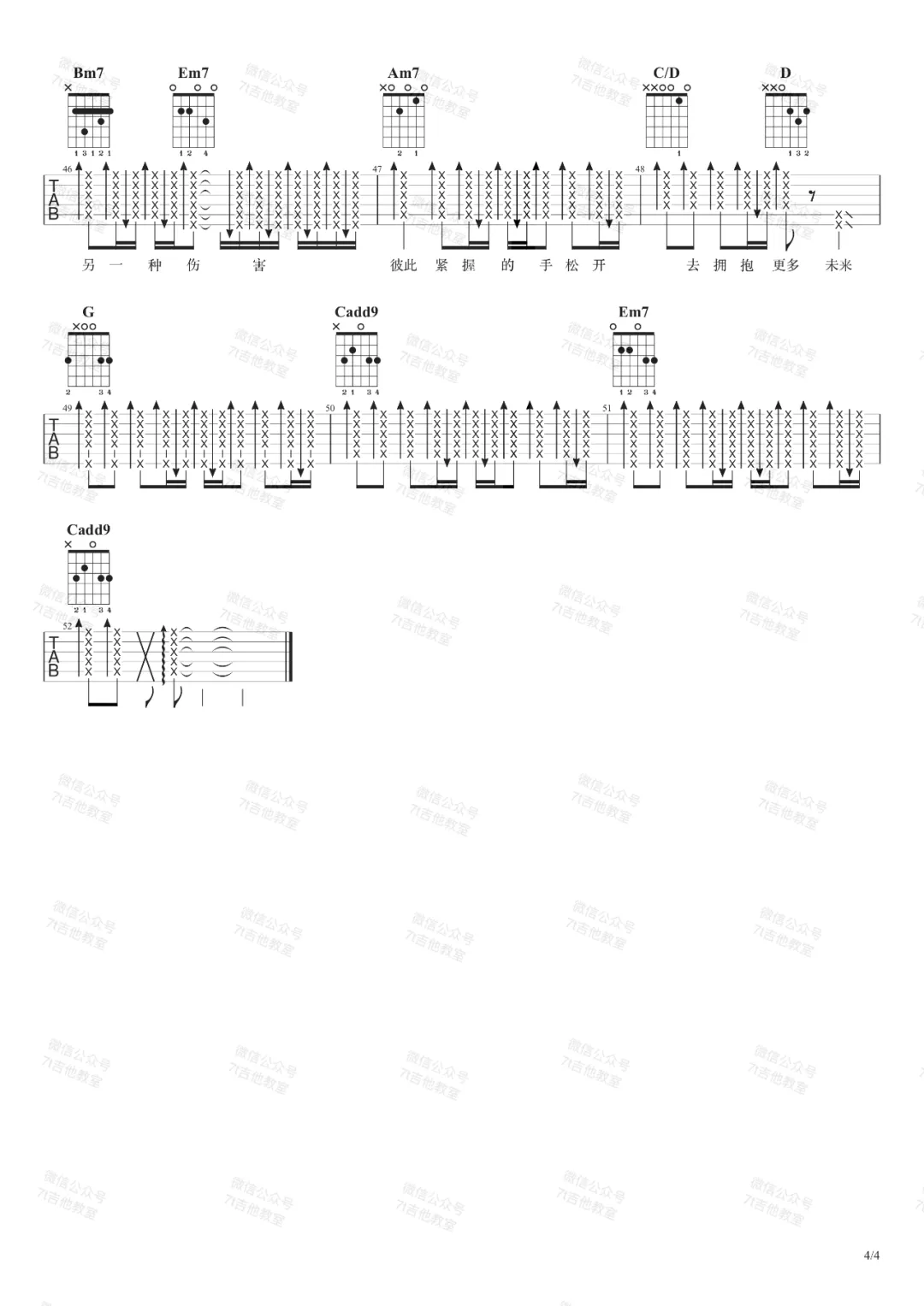 静止吉他谱,取自演唱的歌曲是经典G调指弹编配的曲谱,非常好听的弹唱曲谱,下面4张高清曲谱由吉曲谱网为大家更新分享,有喜欢吉它的朋友欢迎关注!
