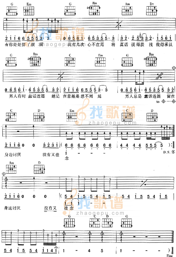 上上签吉他谱,原版周华健歌曲,简单G调弹唱教学,KTV查吧网版六线指弹简谱图