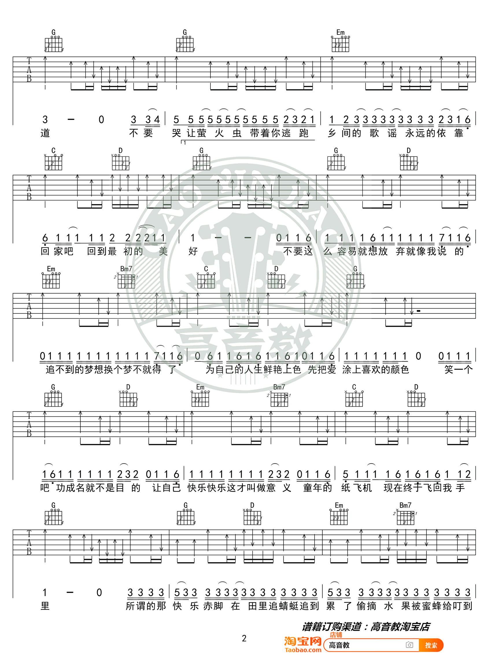 稻香吉他谱,它是周杰伦演唱的原版歌曲,这首歌的旋律非常舒缓和宁静.经典歌曲编配的G调为 不夹变调夹 演奏速度95bmp,入门版 是非常好听弹奏难度:低难度的入门弹唱曲谱,下面为大家分享高清图片谱,有喜欢吉它的朋友欢迎关注!