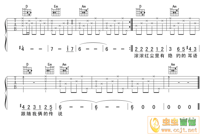 滚滚红尘吉他谱,原版歌曲,简单C调弹唱教学,六线谱指弹简谱3张图