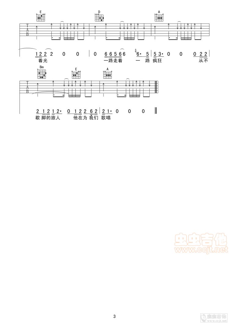 一路走着吉他谱,原版歌曲,简单A调弹唱教学,六线谱指弹简谱3张图